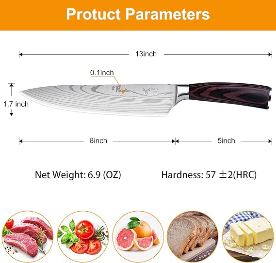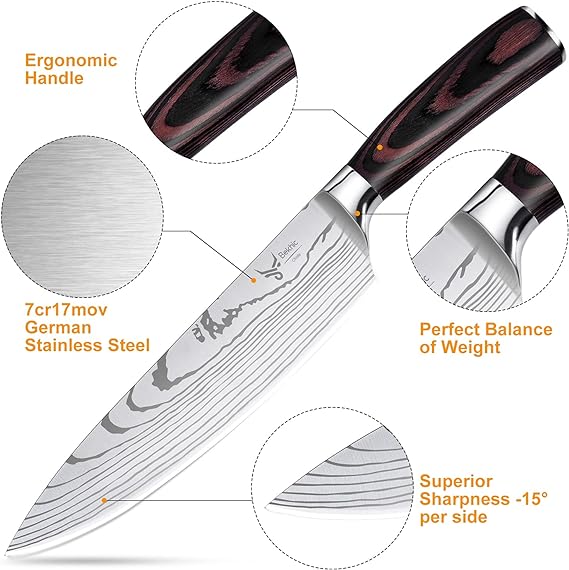 KD Kitchen Knife 8-inch Chef's Knife. German High Carbon Stainless Steel. Ergonomic Handle